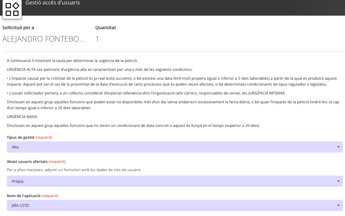 Si no es té accés, es pot obrir un tiquet a Remedy a l’àrea de sol·licitud d’accés, aplicació JIRA CSTD.