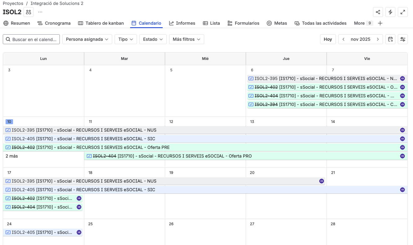 Cada subtasca conté informació rellevant per a la seva traçabilitat i connexió amb altres projectes.
