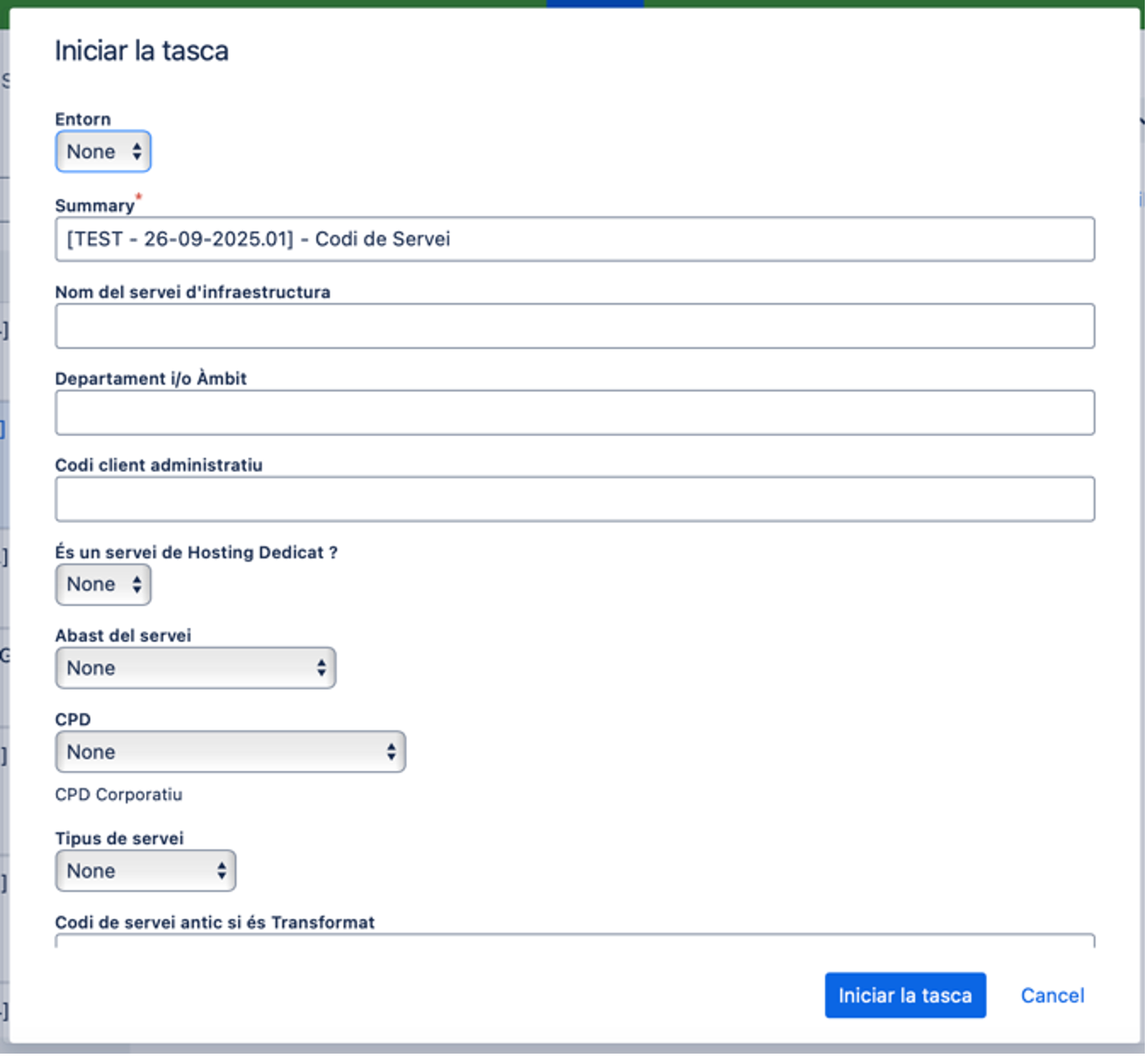 ⚠️ Abans d’activar una tasca, cal omplir la informació corresponent (mitjançant el formulari automàtic) abans de passar l’estat de Nou a En progrés.