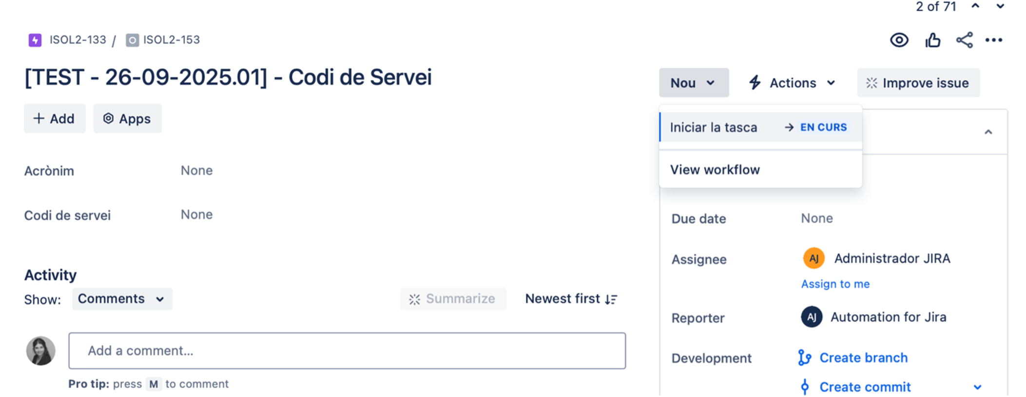 On adjuntar la documentació? S’ha de pujar a Jira, al camp de comentaris.