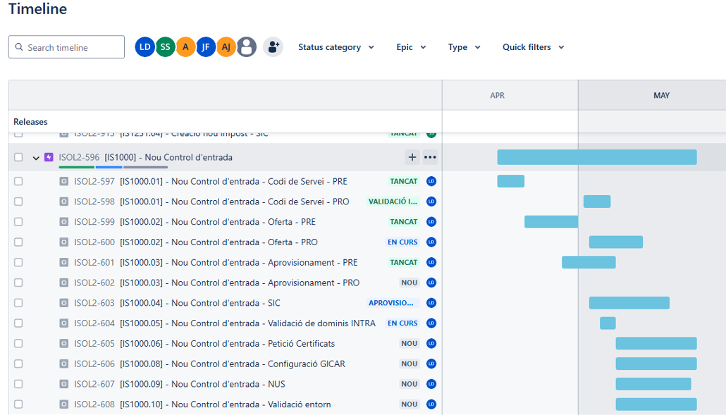 - 📊 Timeline de JIRA: permet el seguiment visual de les subtasques en execució.