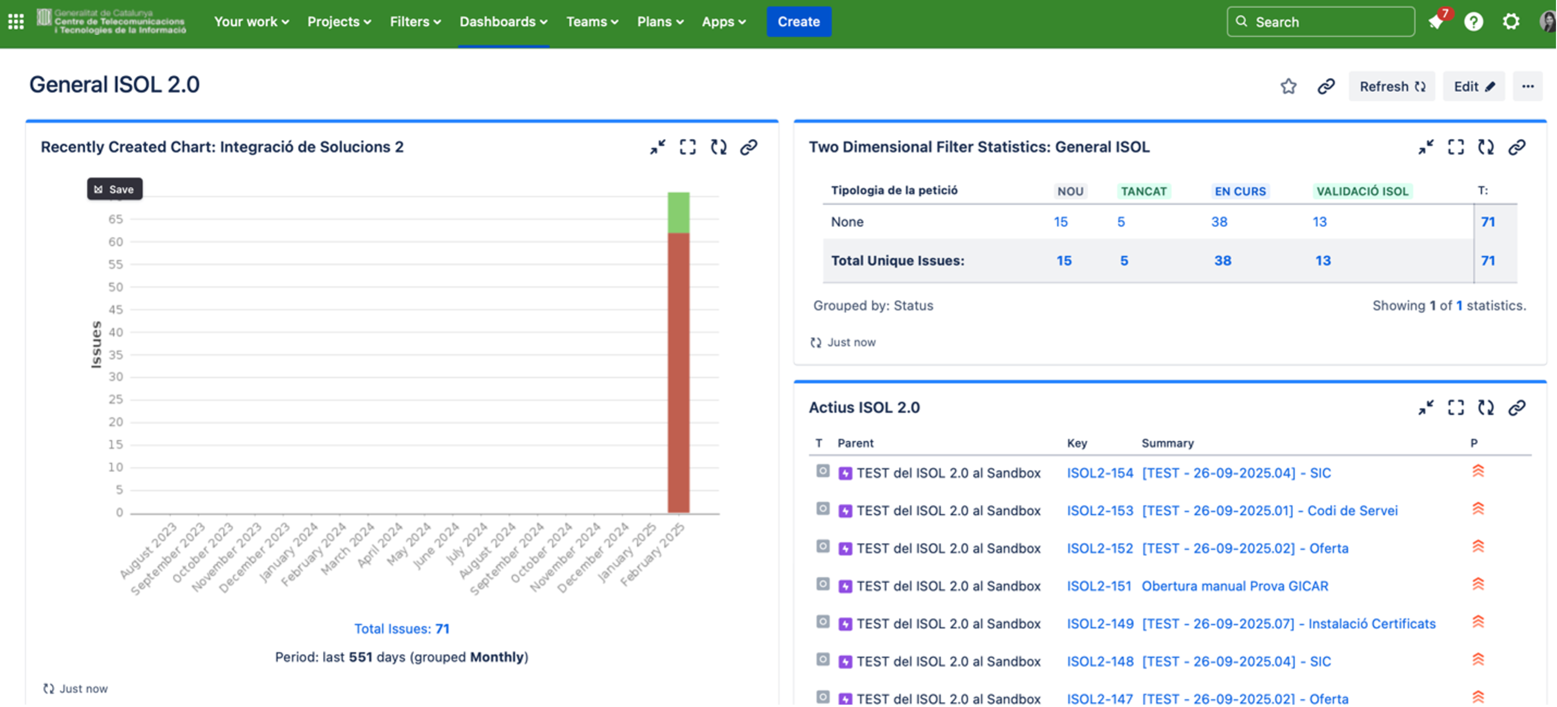 Els Agents ISOL disposen de tres dashboards per fer el seguiment de les tasques.