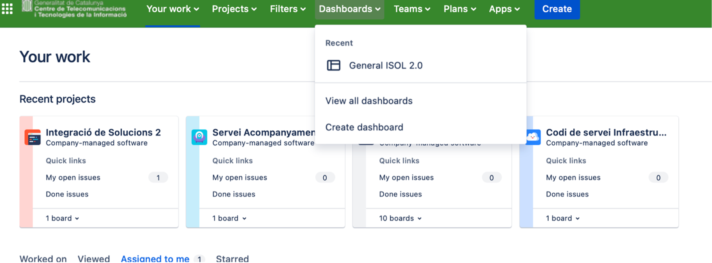 - A la barra superior de JIRA, fer clic a Dashboards.